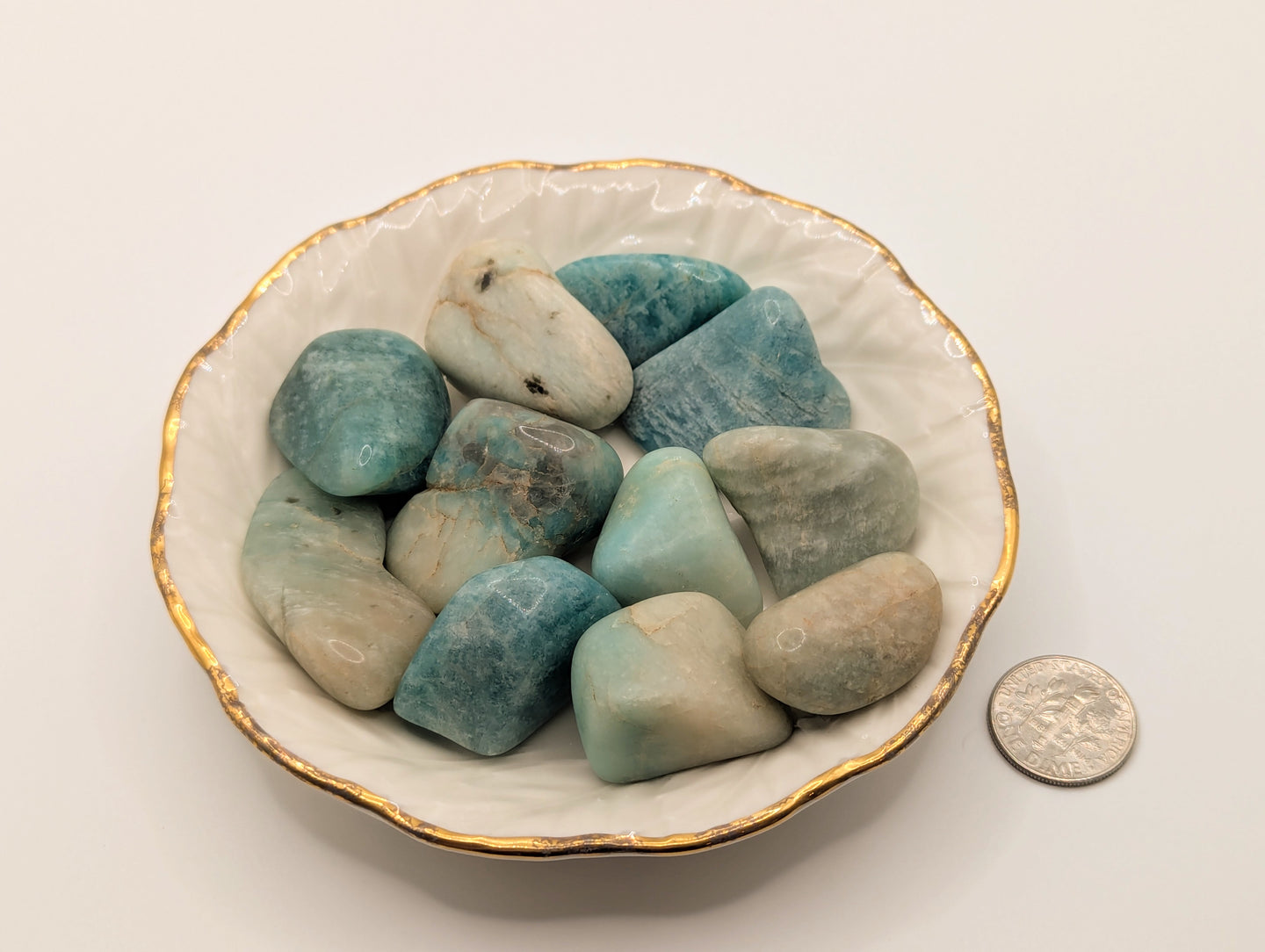 Note that the shape and color of each Amazonite stone may vary slightly. Approx 1"