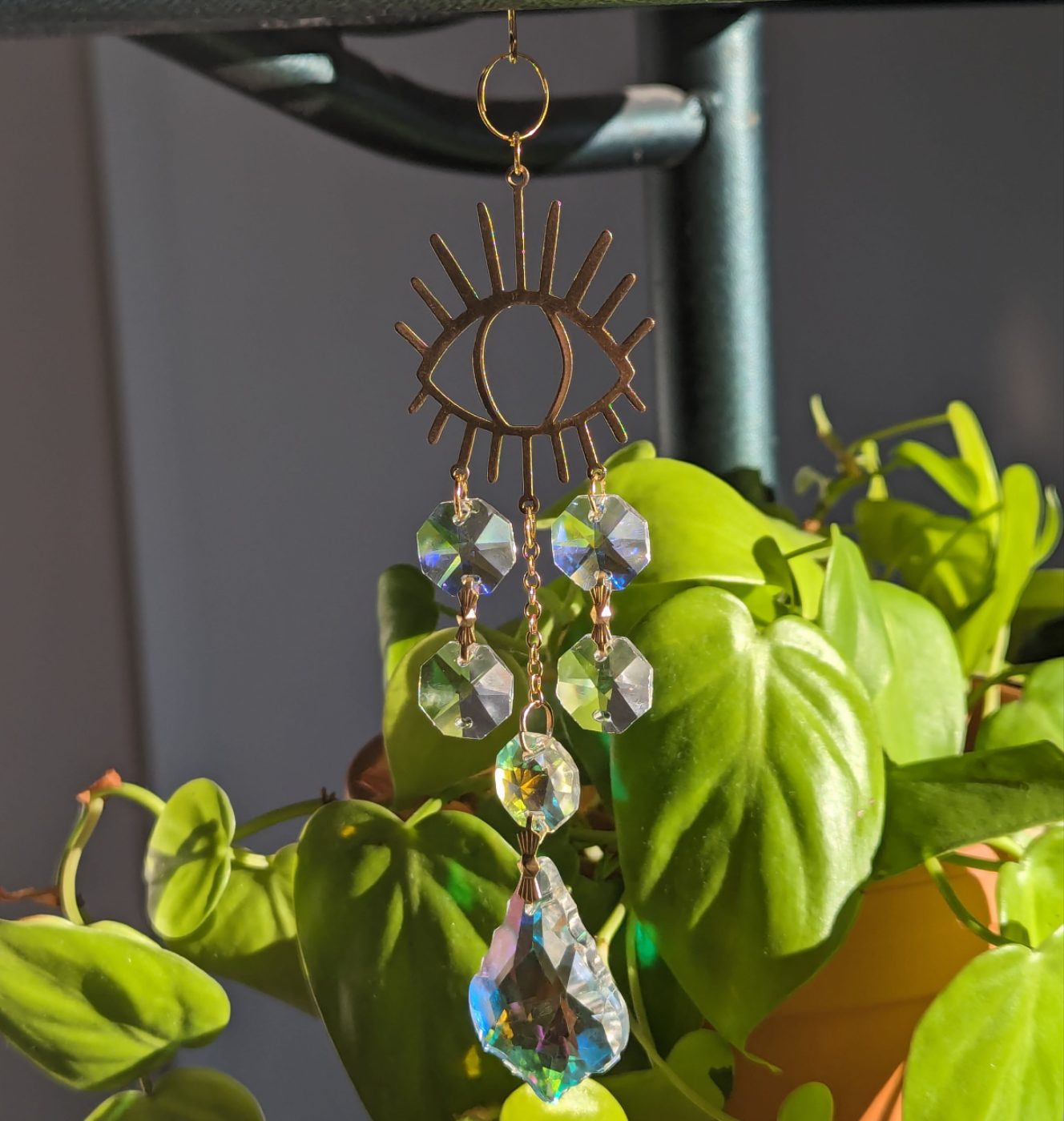 This stunning suncatcher ( Belladonna ) was handmade by The Pleiadian Altar using charms, chains, and chandelier crystals. Hurry if you want to snag this piece - there is only one of her! ✨