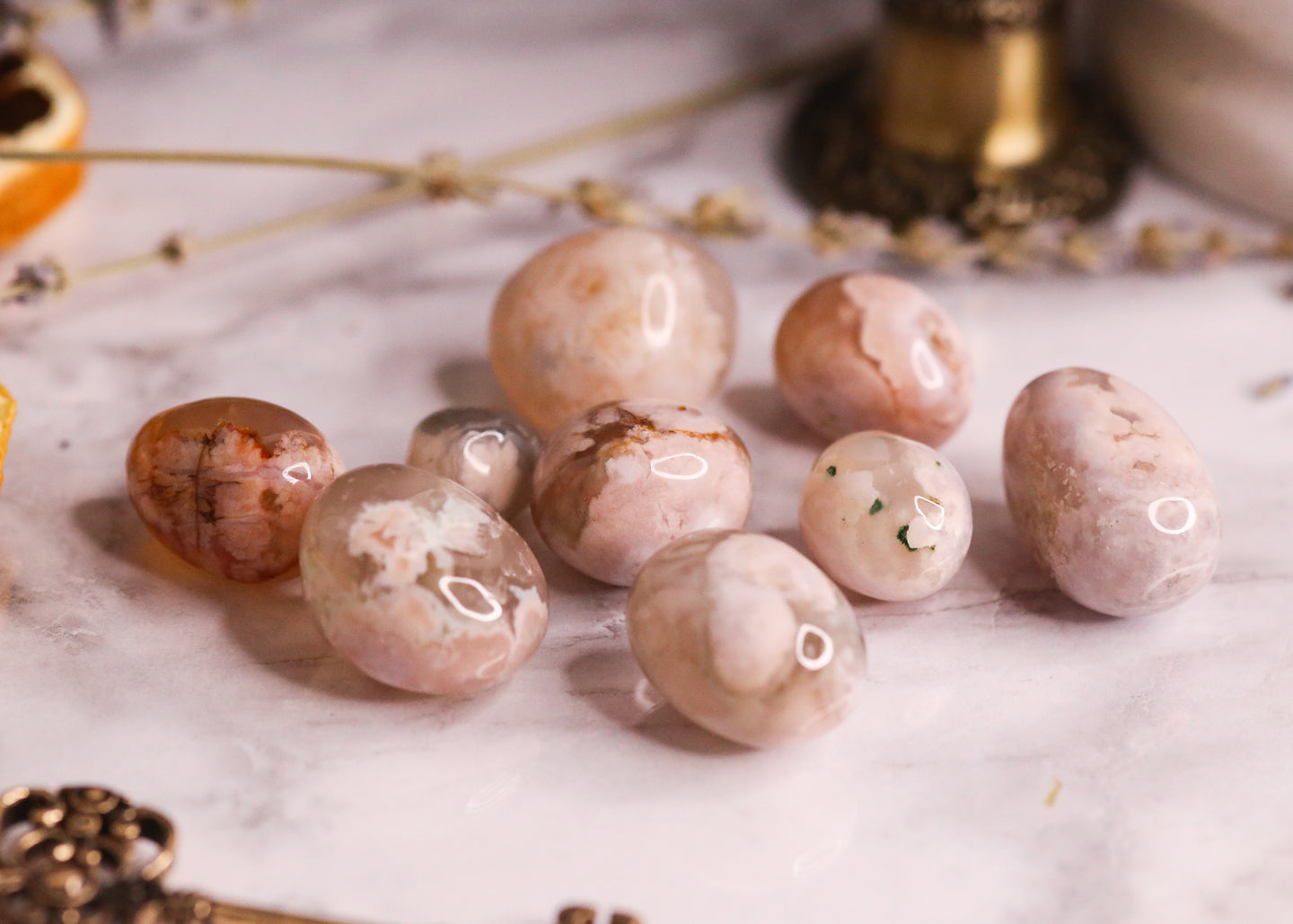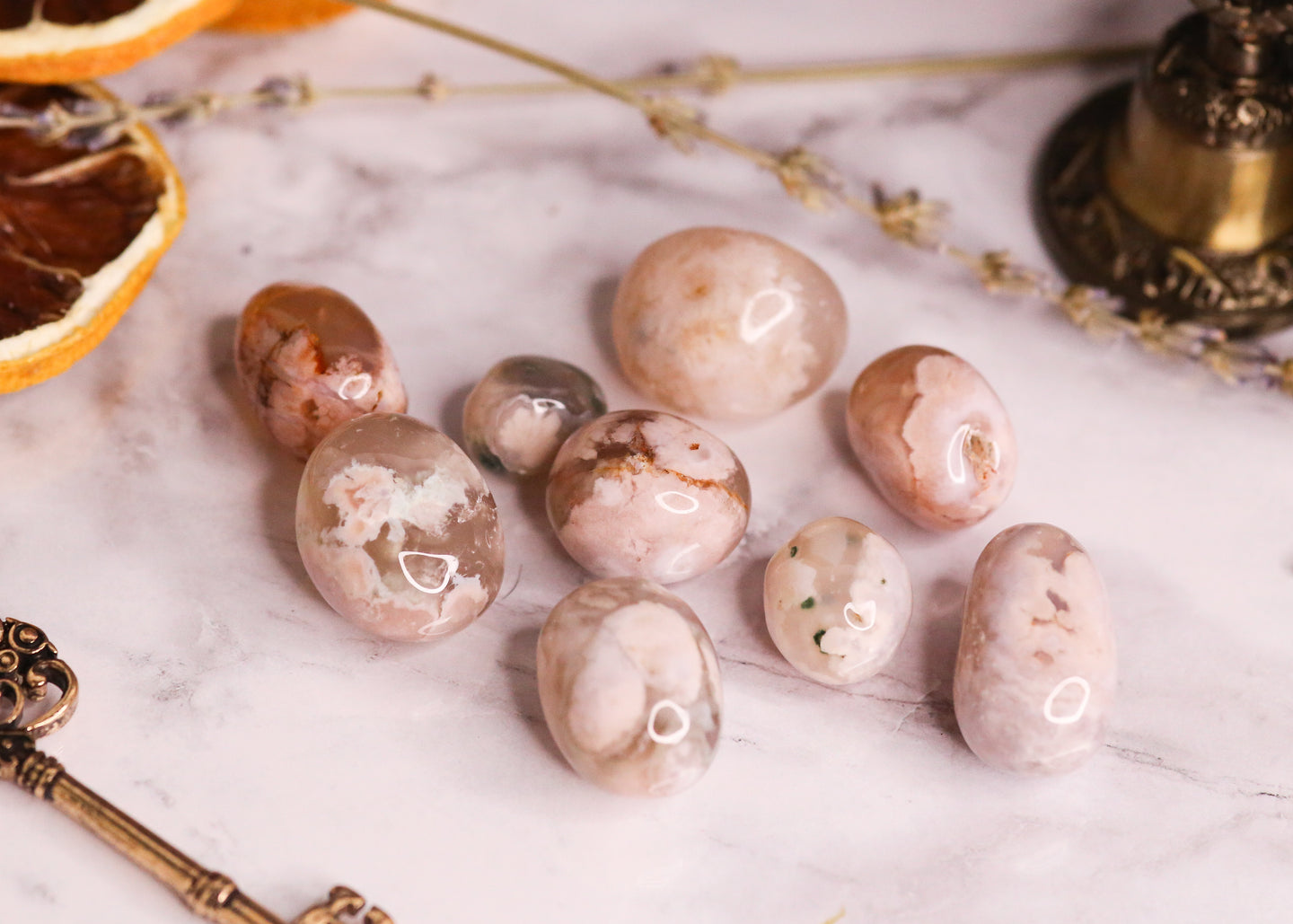 Flower agate is a stone of emotional healing, unconditional love, nurturing, and stability. This listing is for 1 tumble, approx. 0.75 - 1".
