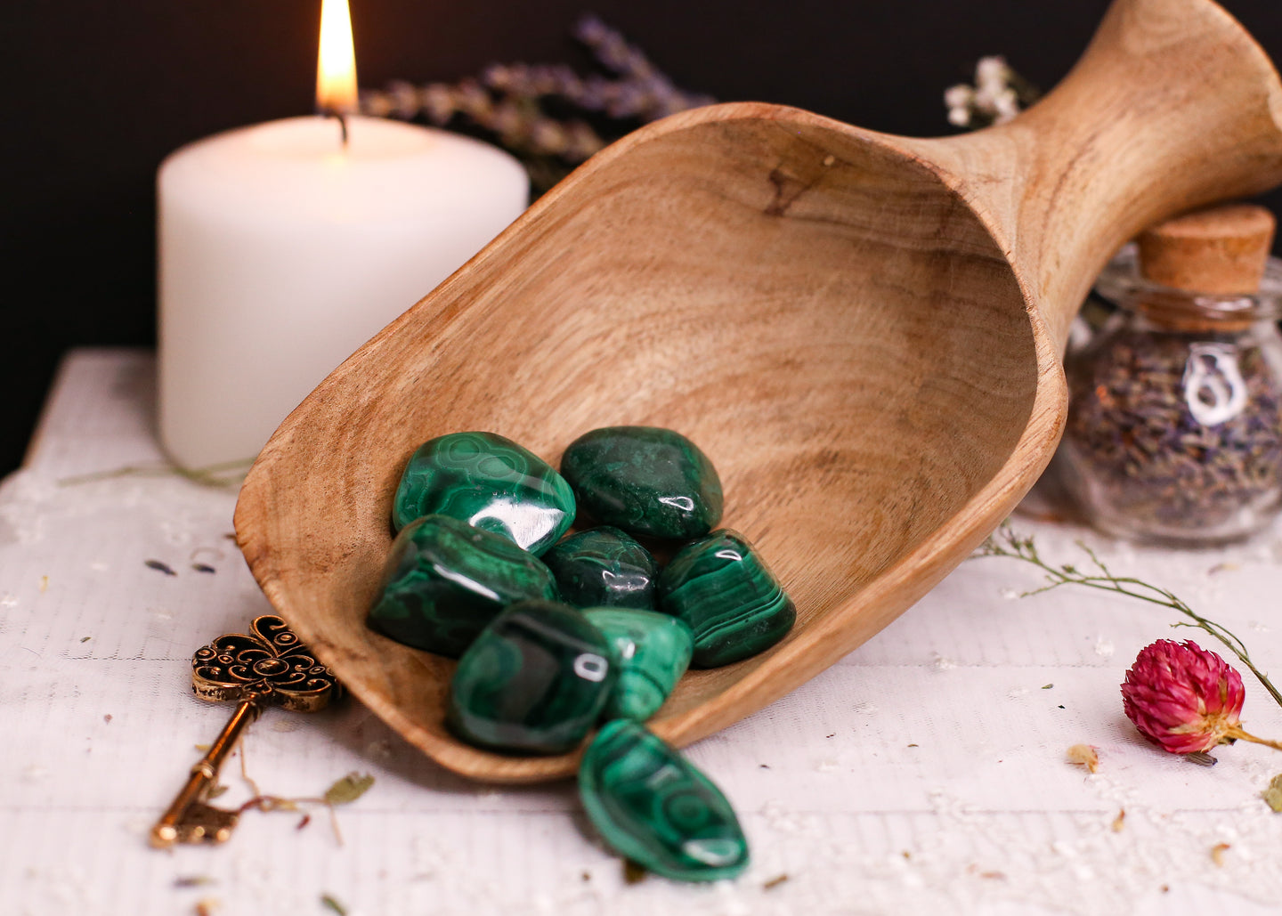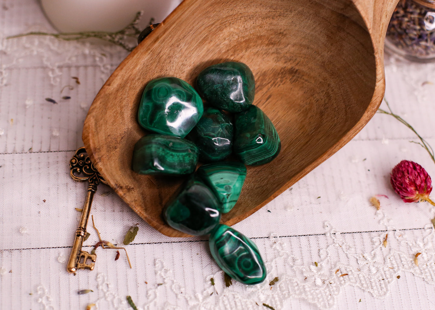 Malachite is an amazing stone for manifesting. It also amplifies spells and the crystals around it. Listing is for 1 malachite tumble, approximately 1- 2".