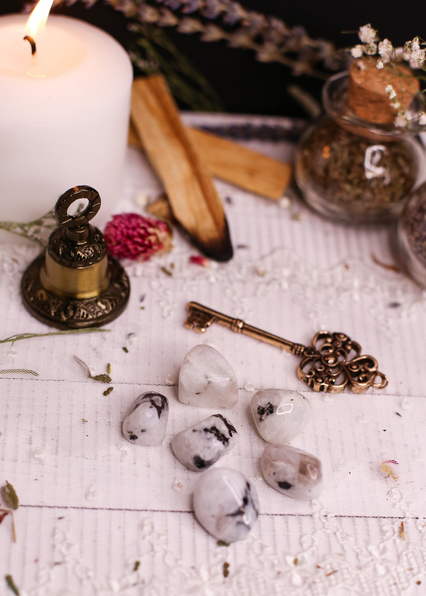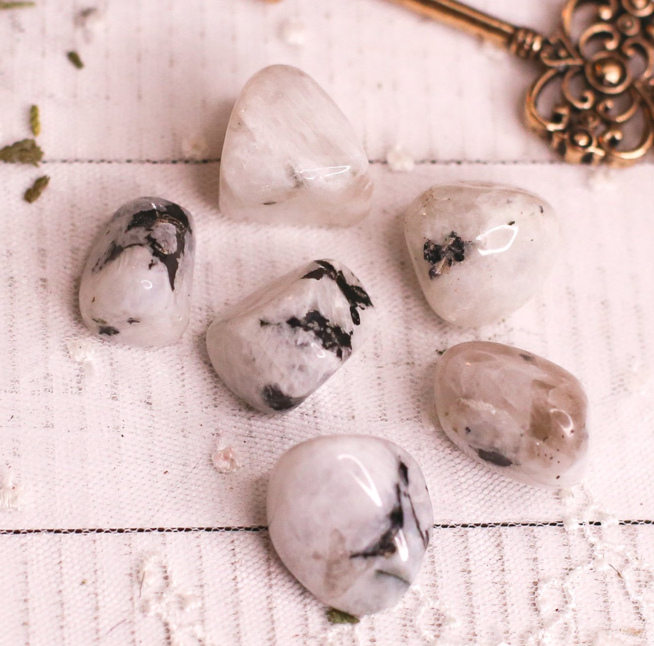 Rainbow moonstone is a breathtaking stone which offers intuitive strength and psychic protection as well as creates a "shield" or barrier around the user which blocks negativity. Each stone is unique, yours may not be the same as pictured. This listing is for one tumble, approx. 1" - photo credits Tiffany Shults.