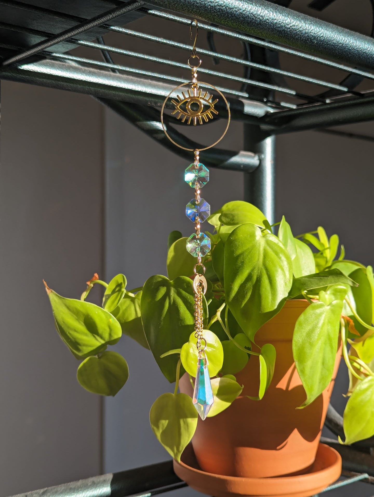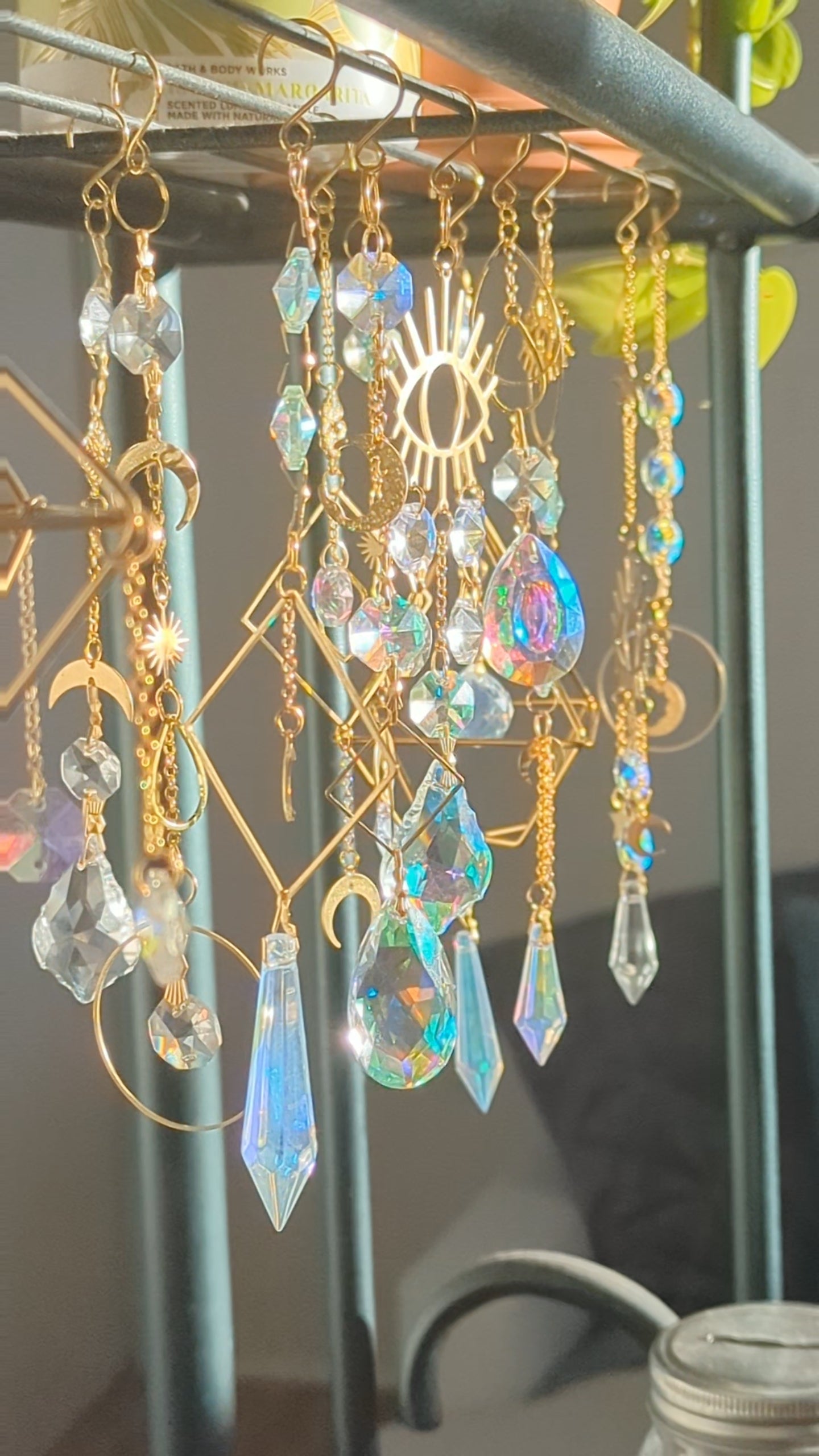 This stunning suncatcher ( Elizabeth ) was handmade by The Pleiadian Altar using charms, chains, and chandelier crystals. Hurry if you want to snag this piece - there is only one of her! ✨