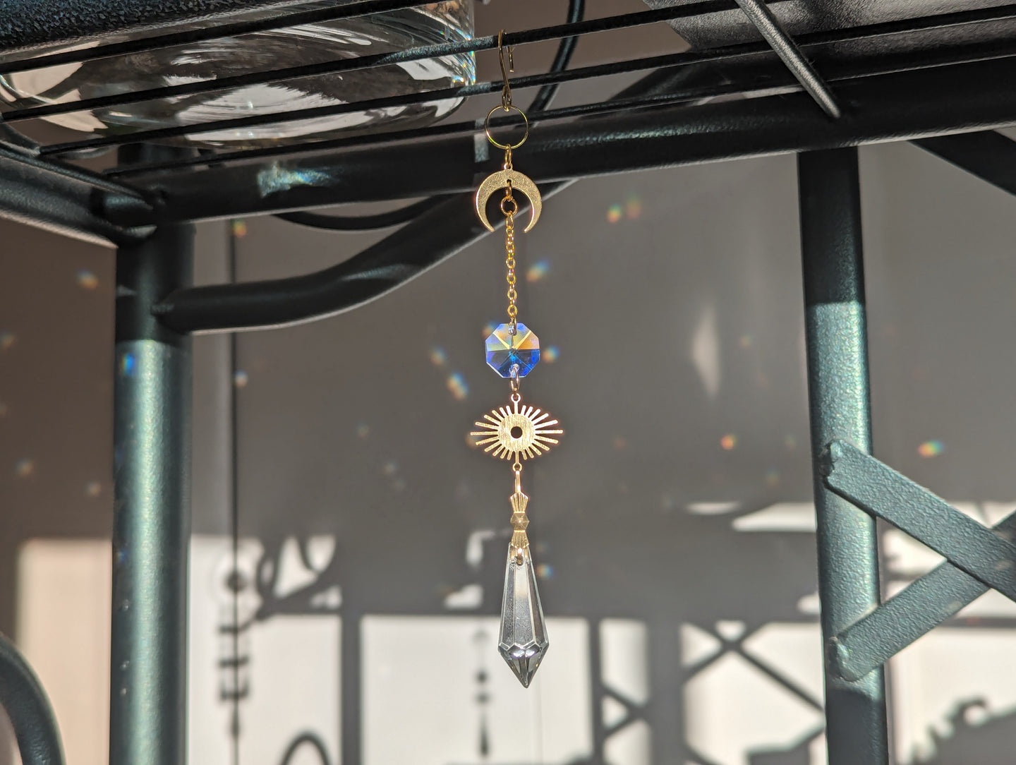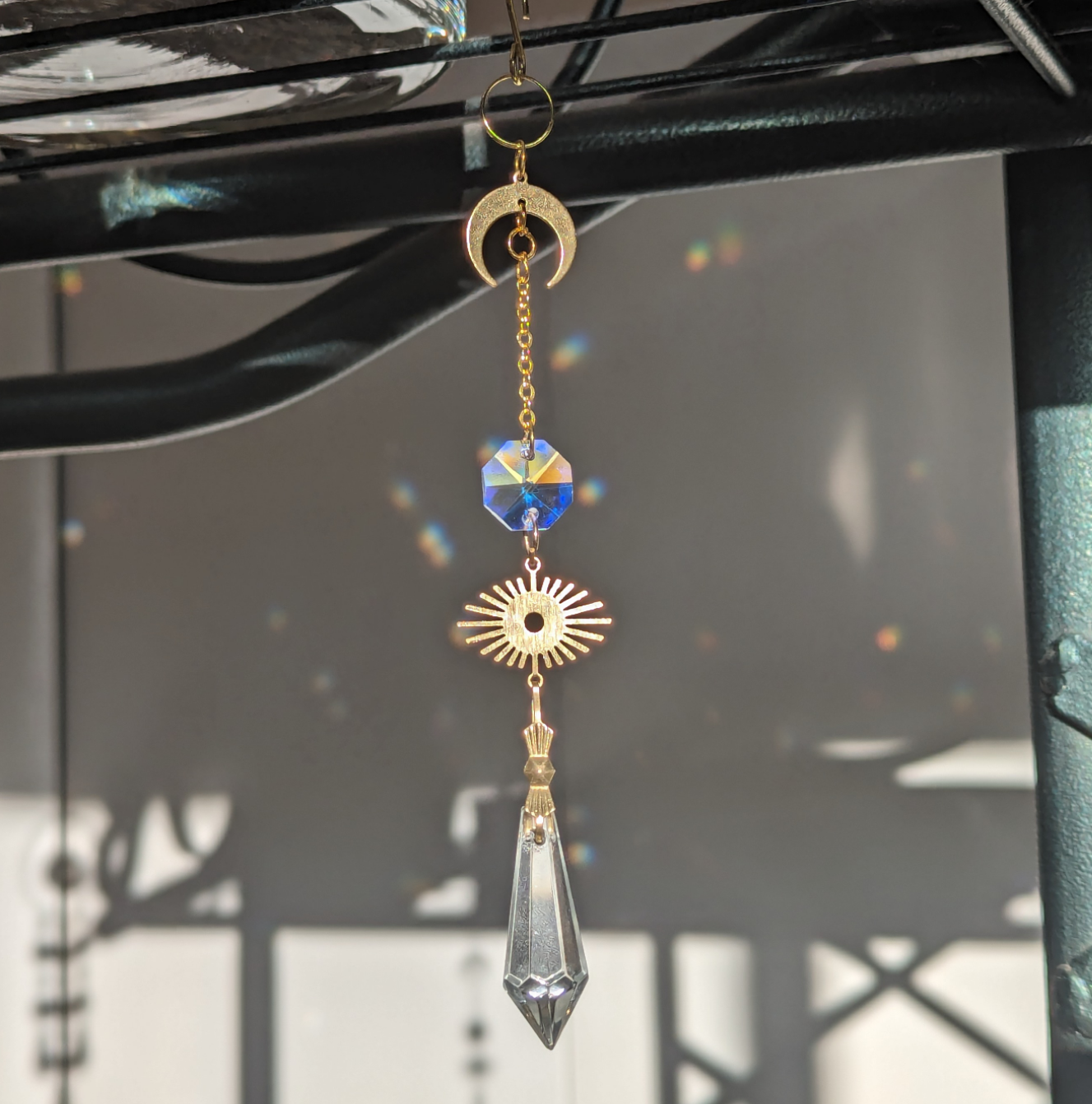 This stunning suncatcher ( Psyche ) was handmade by The Pleiadian Altar using charms, chains, and chandelier crystals. Hurry if you want to snag this piece - there is only one of her! ✨