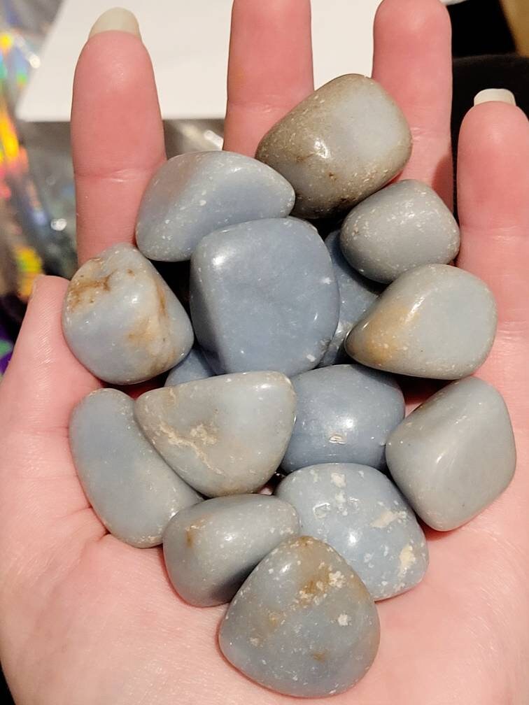 Each stone is unique, yours may not be the same as pictured. This listing is for 1 angelite tumble (approx. 1").