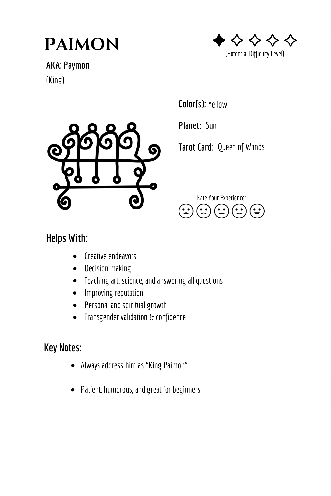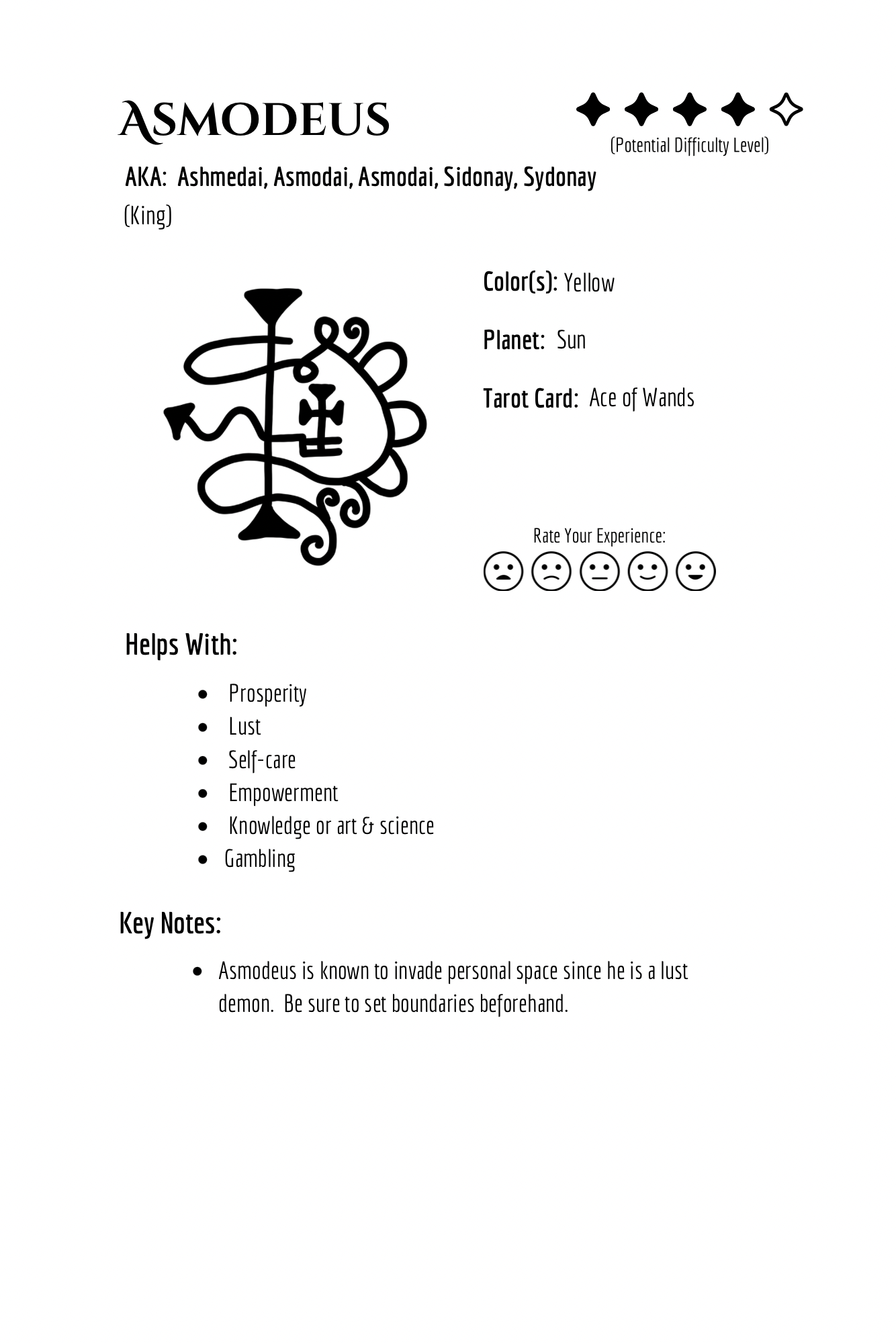 The DemonDex is a digital collection of spirits that were demonized, with information using modern language on how you can use their abilities to assist you.