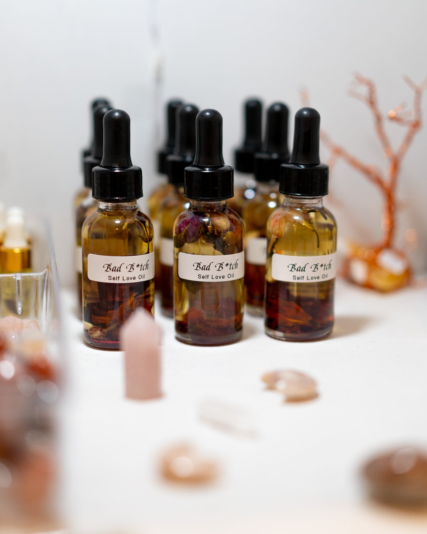 Intention oils are a powerful way to manifest your desired outcomes. Our 1 oz blends feature select essential oils, herbs, flowers and mica. Use it in a bath, directly on skin, or for spell work or sigils. Additionally, mental health-related oils come with self-help resources!