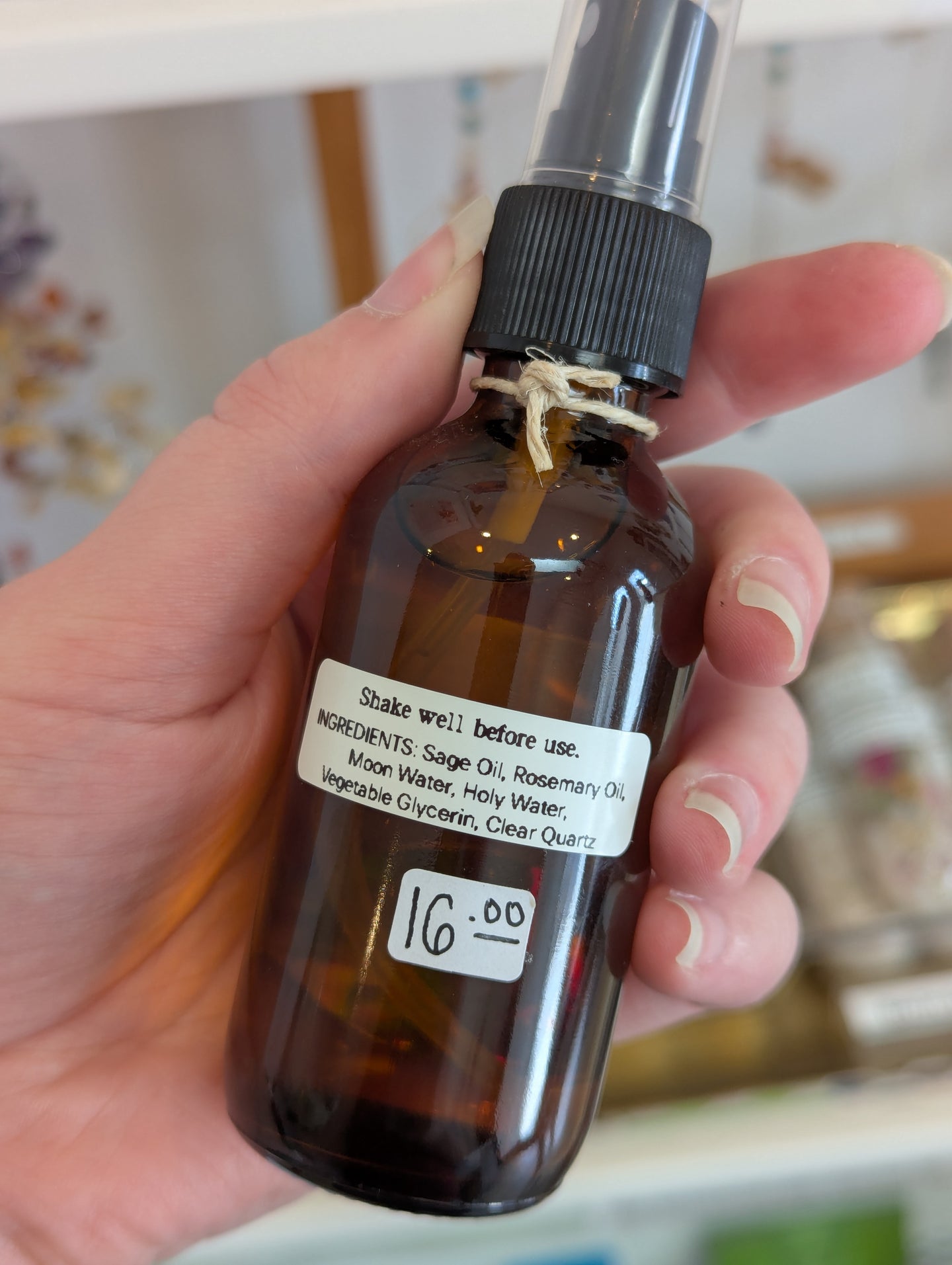 Cleanse your space with our blend of clary sage, rosemary, holy water, moon water, and clear quartz!
