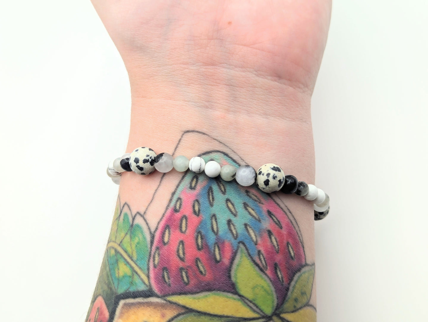 Enjoy the feelings of peace of mind, wisdom, and enhanced intuition with this crystal beaded bracelet!