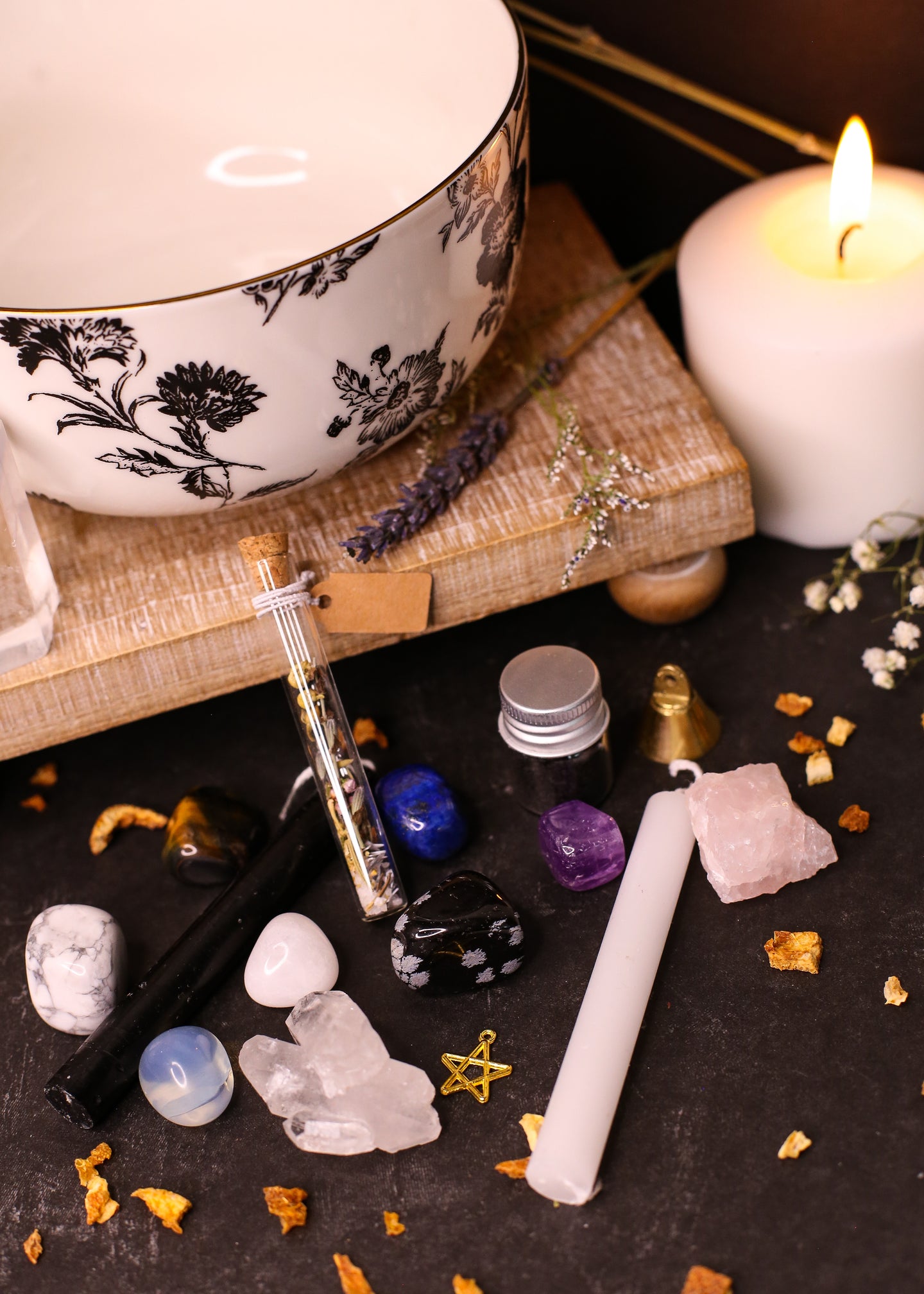 Enjoy a mystery box filled with beginner-friendly witchcraft supplies! May include a combination of crystals, candles, spell jars, jewelry, oils & more.