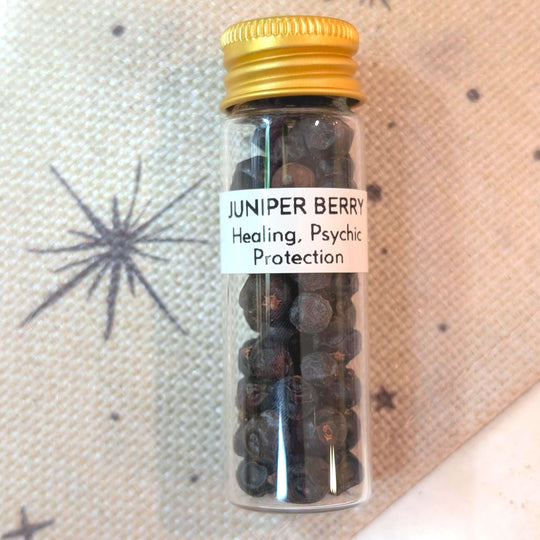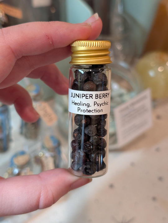 Juniper Berries - Healing, Psychic, & Protection Recommended to use for spell jars, spirit offerings, incense, candle dressing, etc. Perfect for a beginner witch's apothecary collection! Hand packed and labeled in a 15mL screw top glass...Regular price $4.00 -