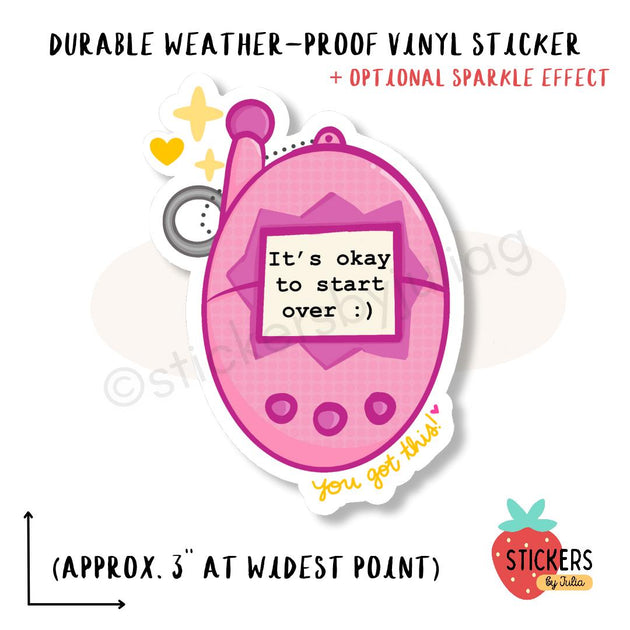 It's Okay to Start Over - Tamagotchi Virtual Pet Sticker - Weatherproof & Dishwasher Safe